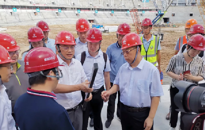 8月18日,中冶建研院董事長、中國工程院院士岳清瑞一行赴三亞體育場項目考察交流,觀摩研討中冶建研院牽頭研發的波形錨CFRP平行板索在三亞體育場索結構中的應用成效。該項目是CFRP板索在大跨體育場實際工程中的首次大規模應用,屬于國際首創,對于CFRP材料在大跨空間結構乃至于新建結構中的推廣應用具有重要的引領作用和里程碑意義。