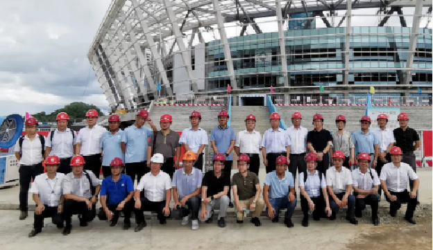 三亞國奧體育產業投資有限公司總經理張威,北京城建六建設集團有限公司副總裁韓建成、李云波、總工程師高文光,中冶鋼構有限公司常務副總經理蘇洪華、副總工劉明路、設計院院長羅興隆;中冶建研院總經理助理常正非、技術總監李榮等30余人參加考察交流。